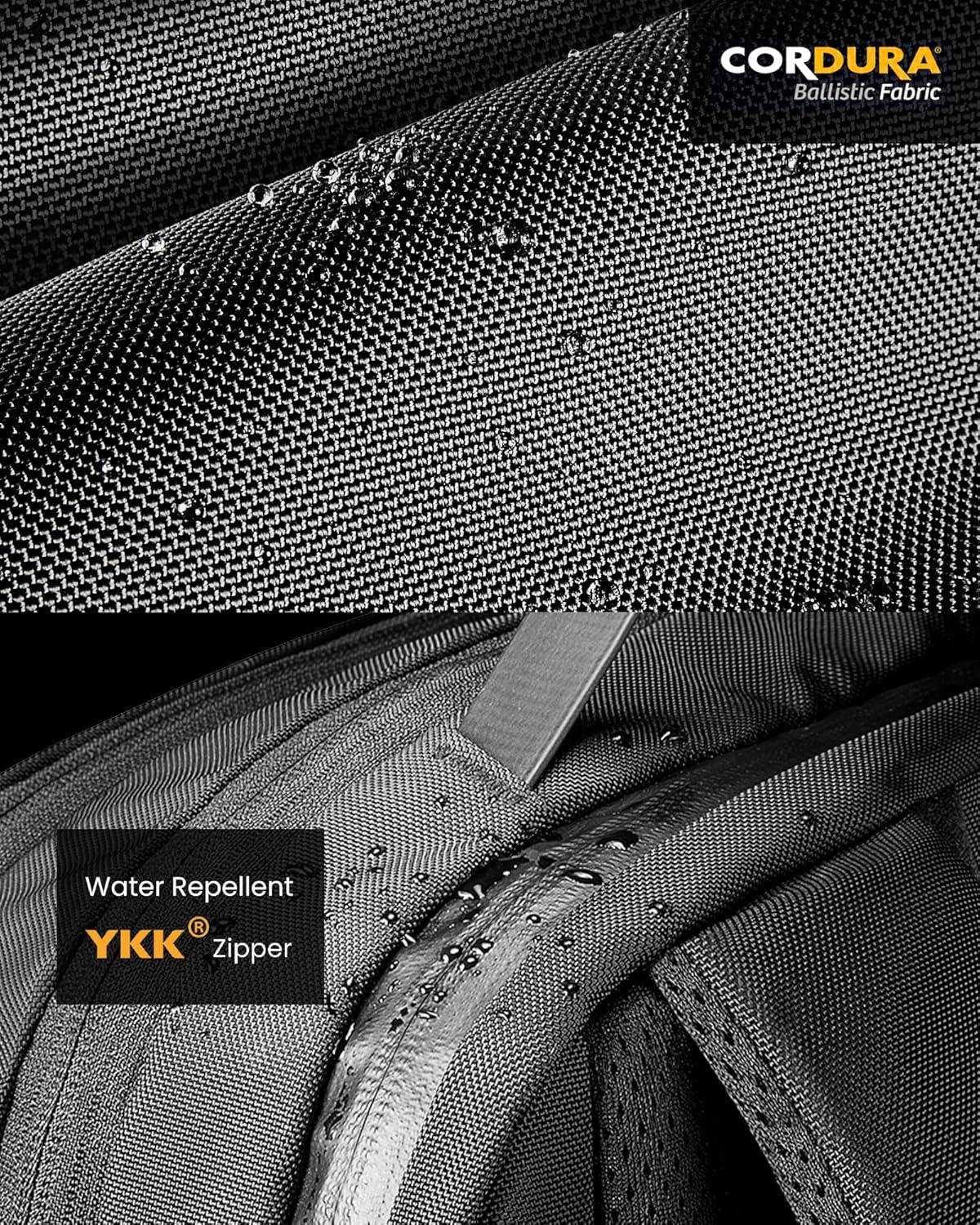Durable Ballistic Nylon: Crafted from military-standard CORDURA ballistic nylon with a waterproof YKK zipper, this backpack is built to withstand tearing and abrasion, offering long-lasting durability and reliability for your adventures