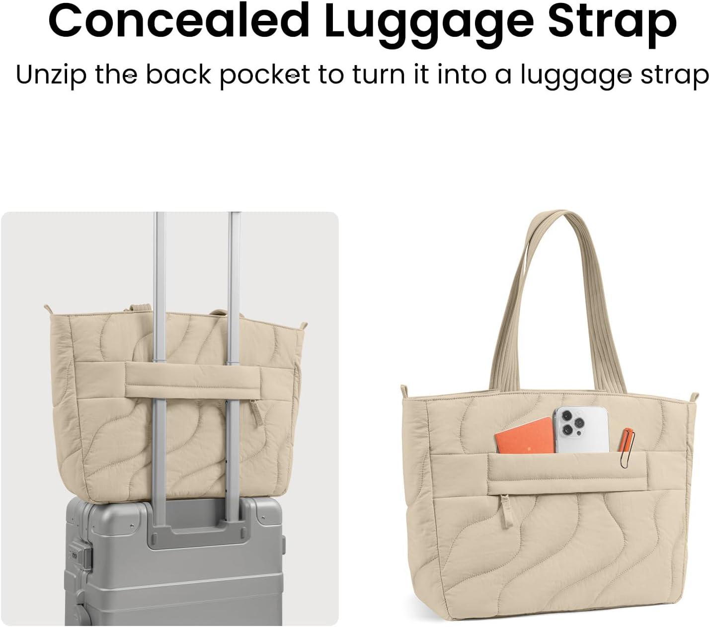 Comfortable, Multiple Carry Options: This practical work tote bag offers breathable, soft-touch straps that contour to your shoulder. With handheld, over-the-shoulder, or luggage-mounted modes, plus its puffy design, it ensures lasting comfort throughout busy days
