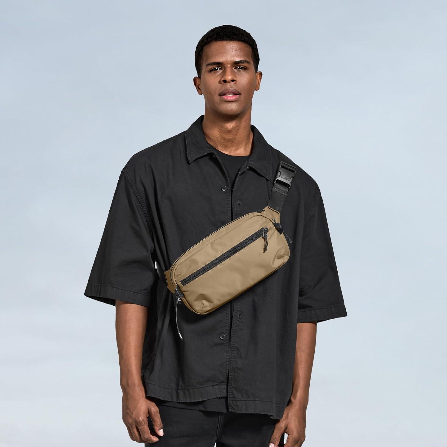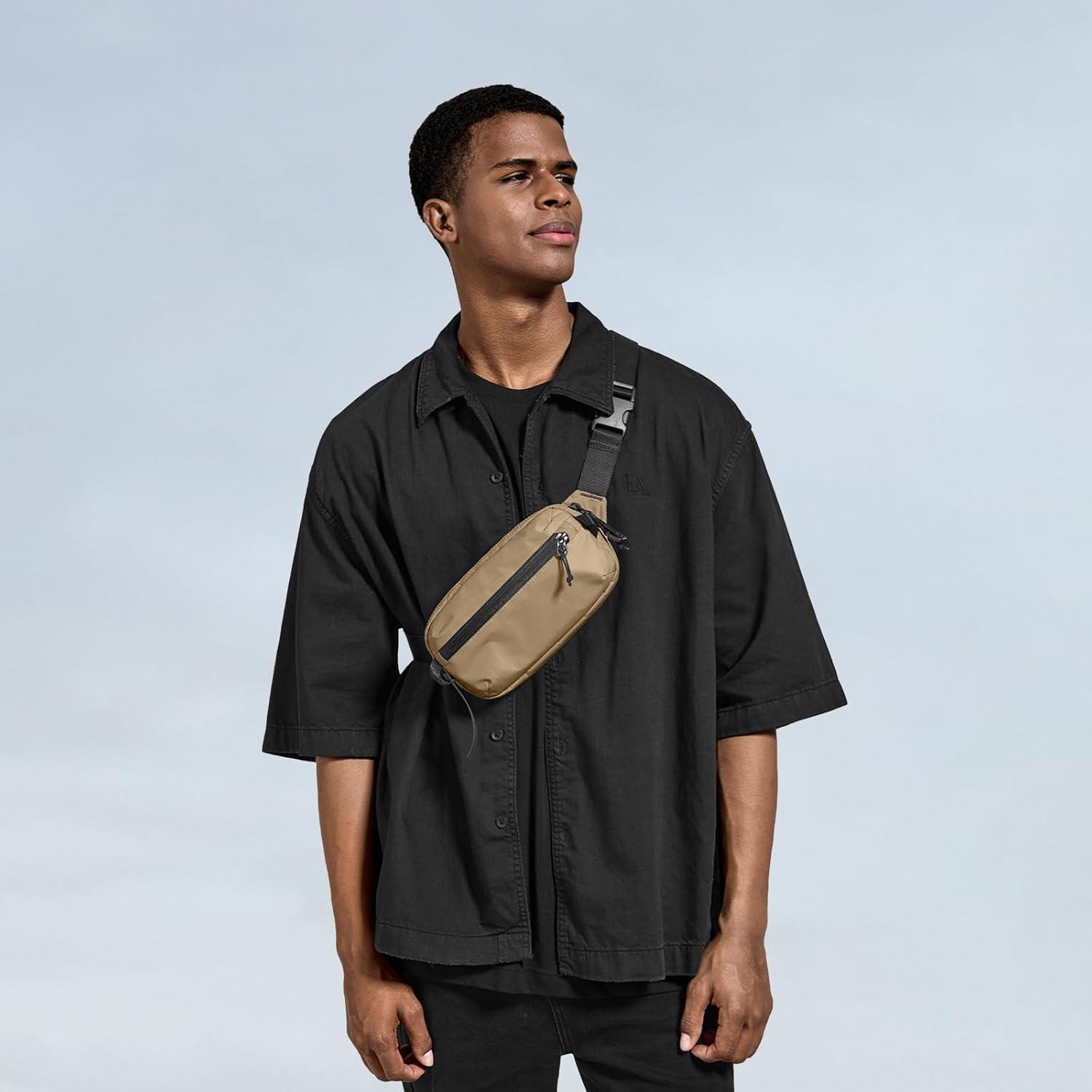 tomtoc 3.5L X-Pac Sling Bag with RFID Blocking, Crossbody Bag Minimalist Chest Shoulder Pack for Men/Women, Water-resistant Lightweight Casual Funny Pack for Travel/Daily Commute(Khaki)