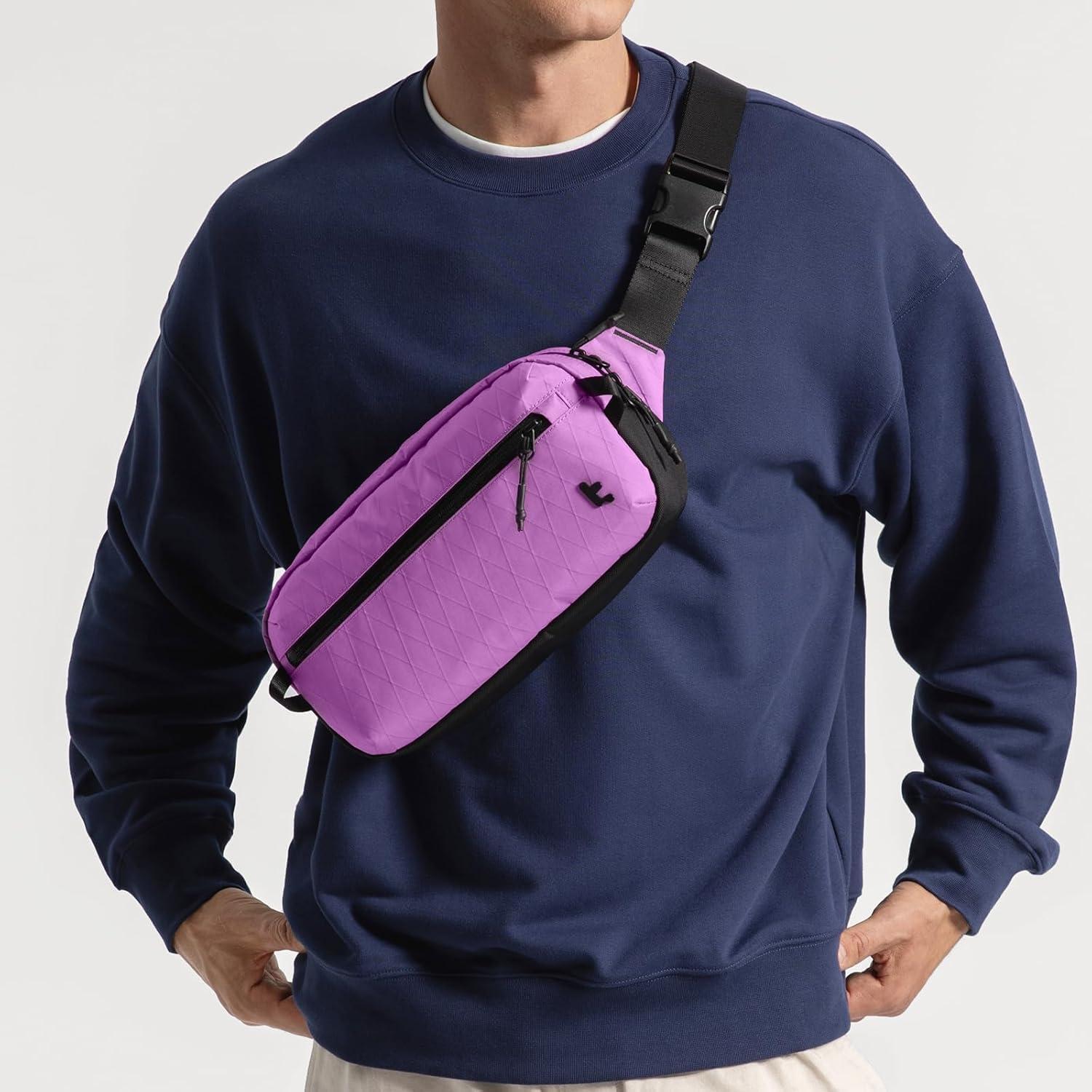 tomtoc 3.5L X-Pac Sling Bag with RFID Blocking, Crossbody Bag Minimalist Chest Shoulder Pack for Men/Women, Water-resistant Lightweight Casual Funny Pack for Travel/Daily Commute(X-Pac Purple)