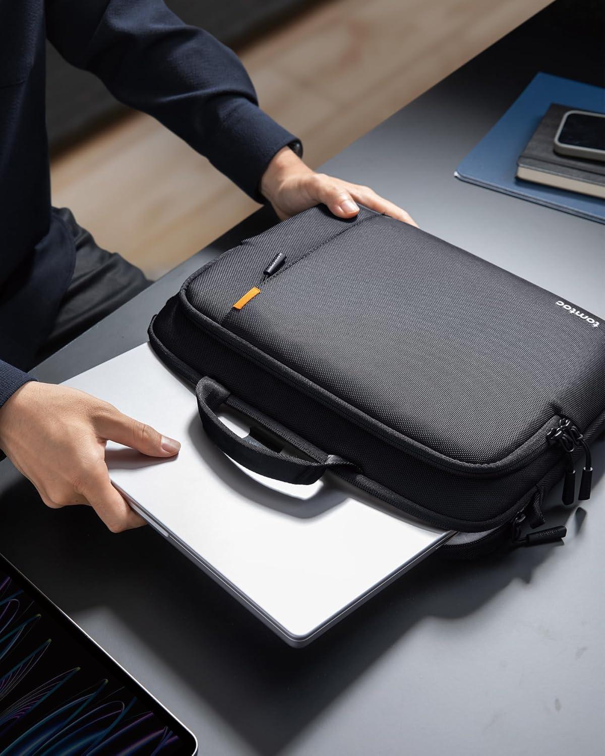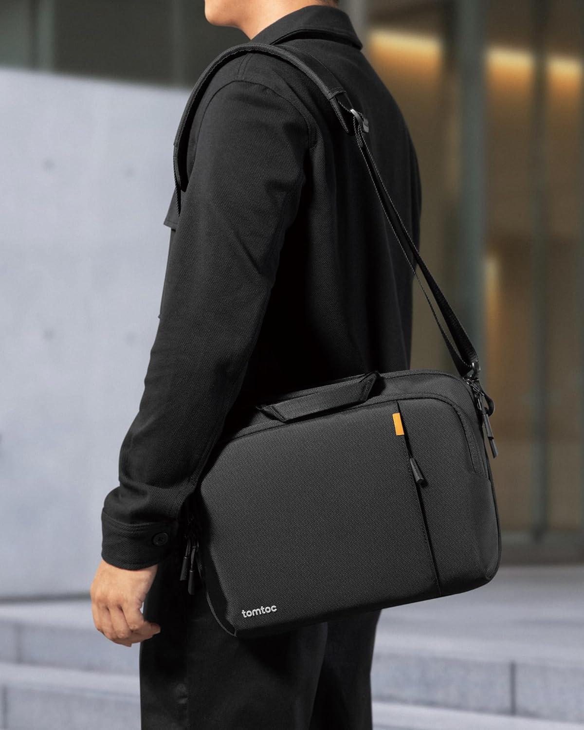tomtoc 360 Protective Laptop Carry Case for 14-inch MacBook Pro M5/M4/M3/M2/M1 Pro/Max A3434 A3112 A3401 A3185 A2992, Water-Resistant Laptop Shoulder Bag for 13-inch MacBook/iPad Pro M5/iPad Air M3(Black)