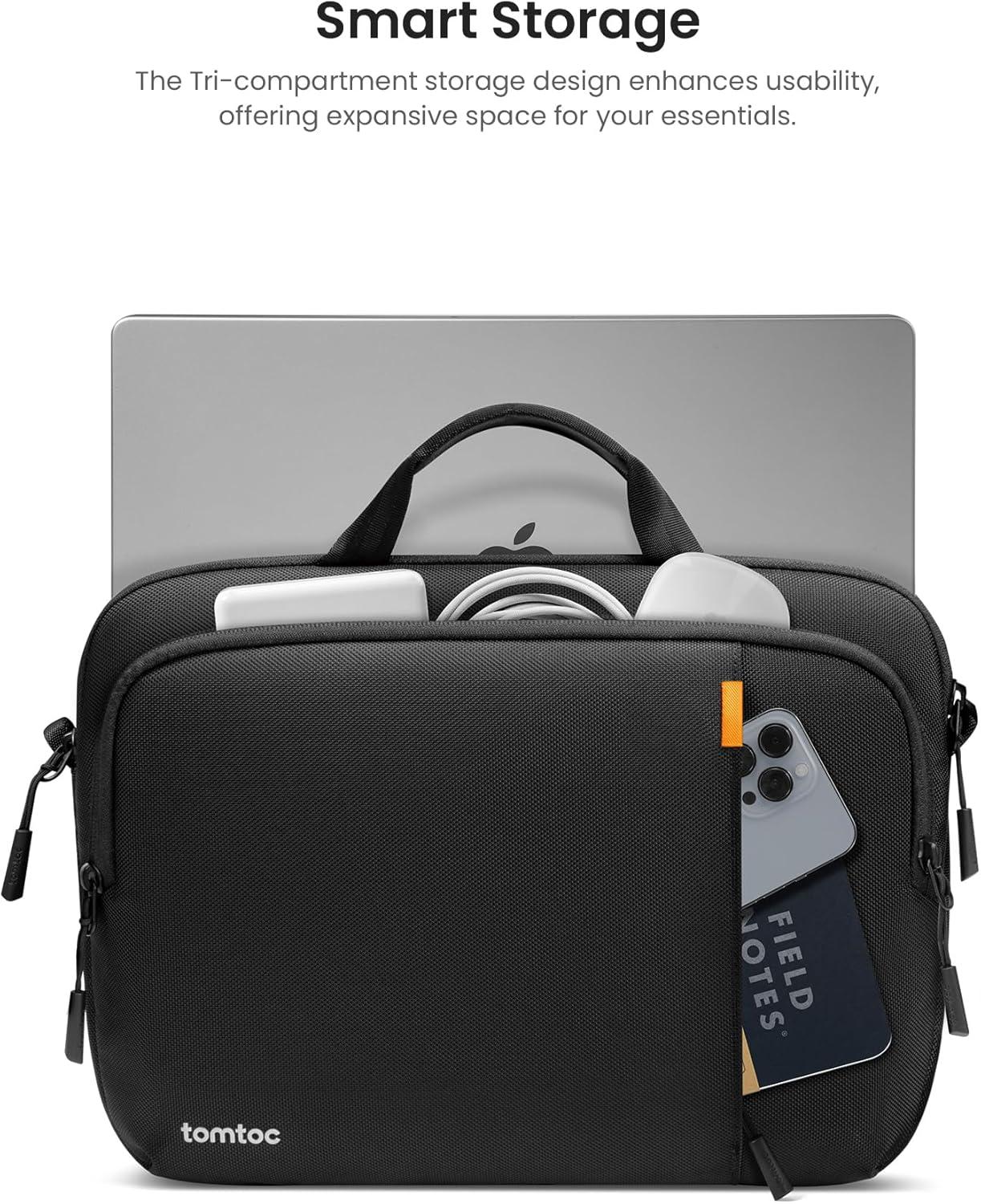 tomtoc 360 Protective Laptop Carrying Case for 13-inch MacBook Air M4/A3240 2025, M3/A3113, M2/A2681, M1/A2337, MacBook Pro M2/A2686, Water-Resistant Laptop Bag for 13″ iPad Pro M4/iPad Air M3 M2(Black)