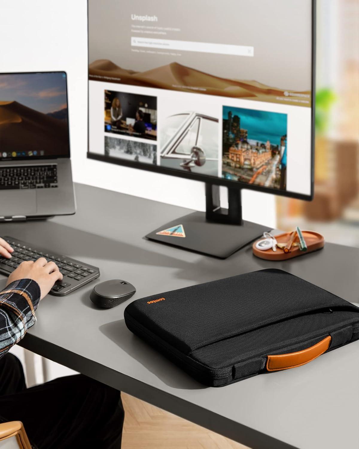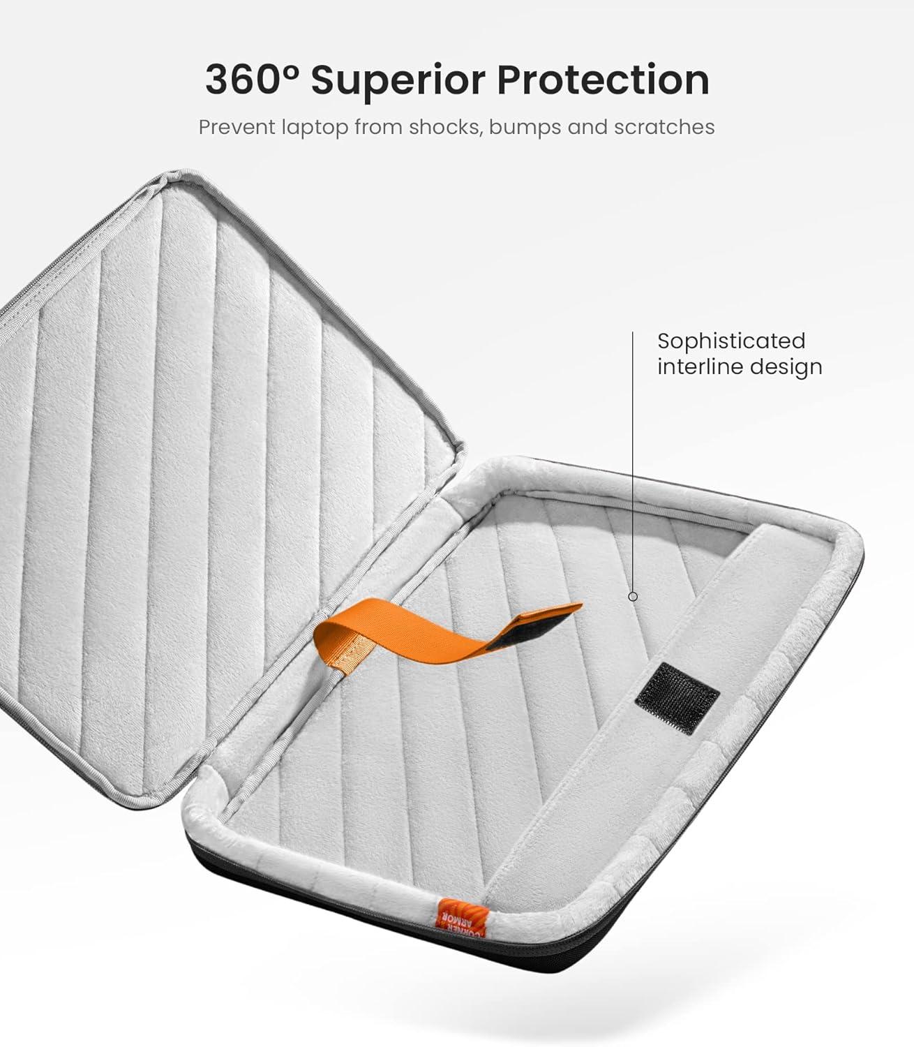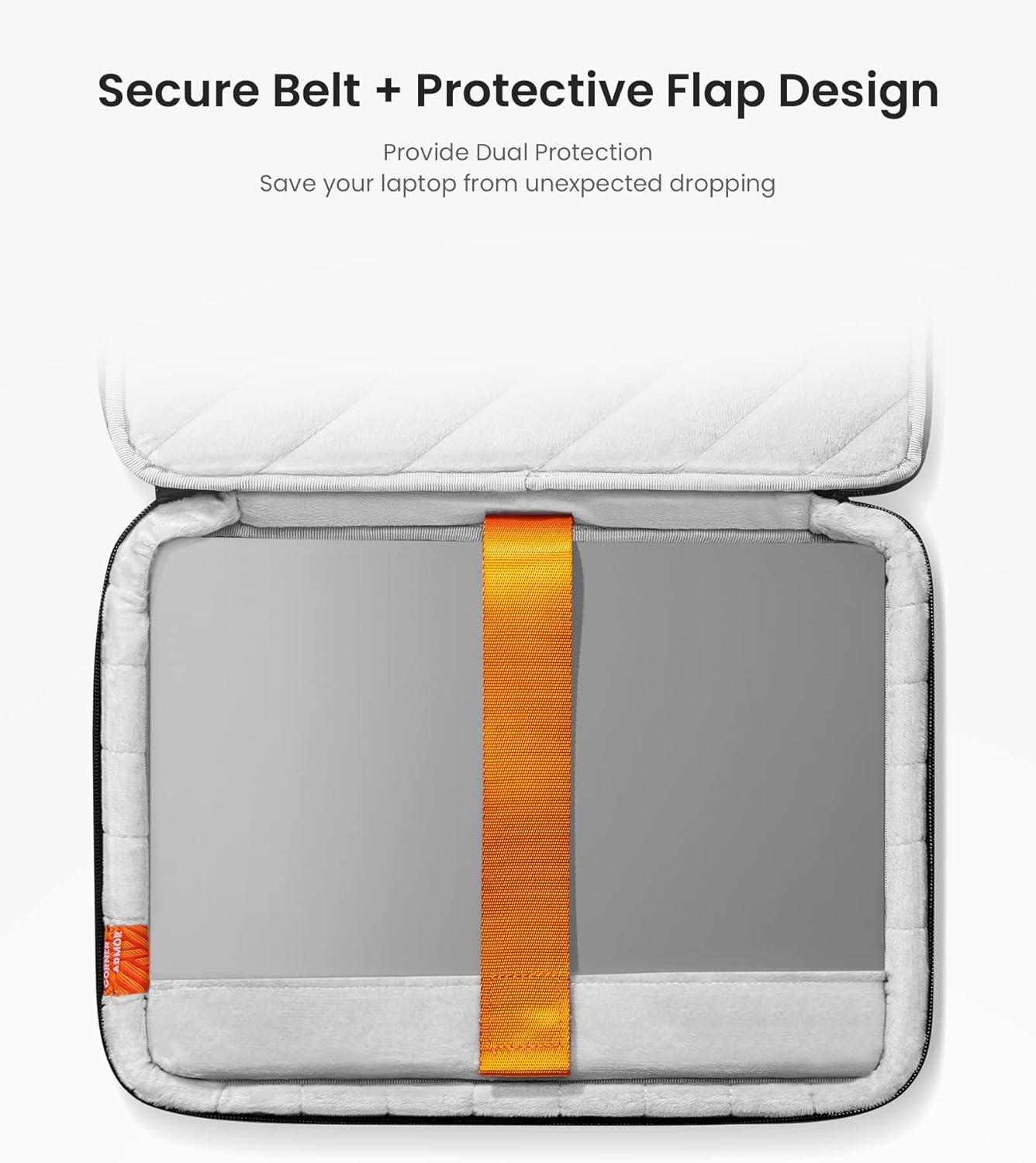 Convenient Clamshell Opening with Safety Design: The full zip-around access laptop bag makes it easy to packability. To keep your laptop snug and secure inside and protect your laptop from unexpected drops due to forgetting to close the zipper, the laptop case is equipped with a dual protection structure – a secure belt and an innovative protective flap cover