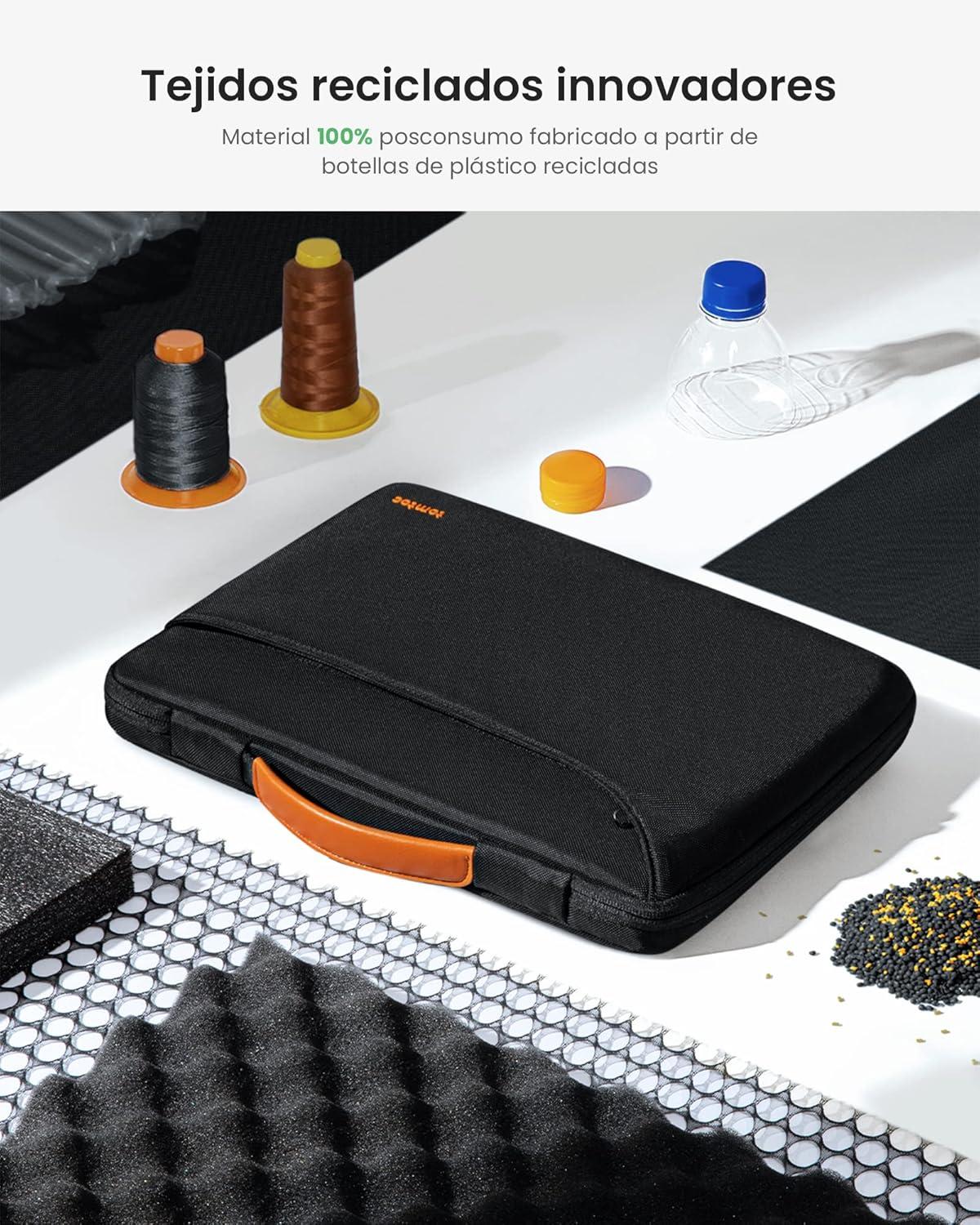 Quality Meets Performance: The laptop sleeve is manufactured with water-resistant recycled fabrics, soft fleece lining with sophisticated lines, Japanese top-quality YKK zippers, and a comfortable PU leather handle that exceeds your expectations for a daily commute laptop bag. Enable us to give complete protection to your computer while also protecting our environment