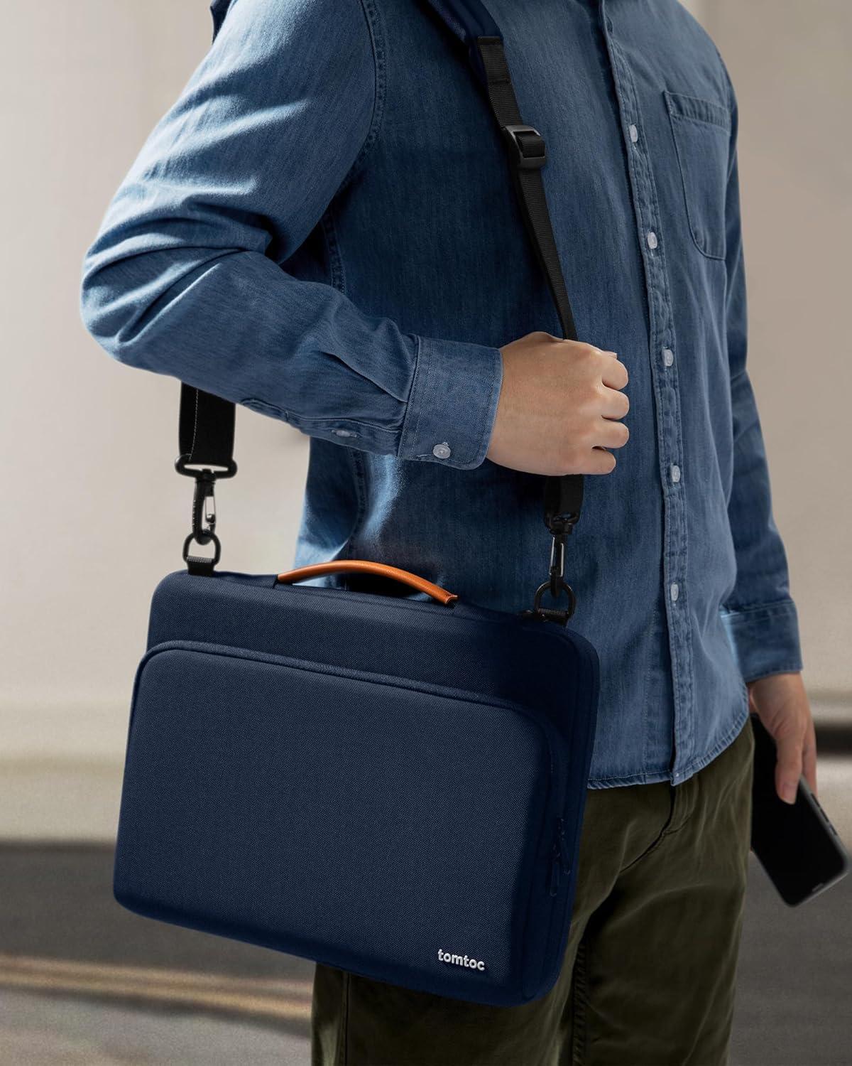 tomtoc 360 Protective Laptop Shoulder Bag for 15.6 Inch Lenovo IdeaPad Gaming 3, Acer Nitro 5 Gaming Laptop, ASUS 15.6-16 Inch ASUS Strix G16/G15, Dell XPS 17, Water-Resistant Accessory Carrying Case(Navy Blue)