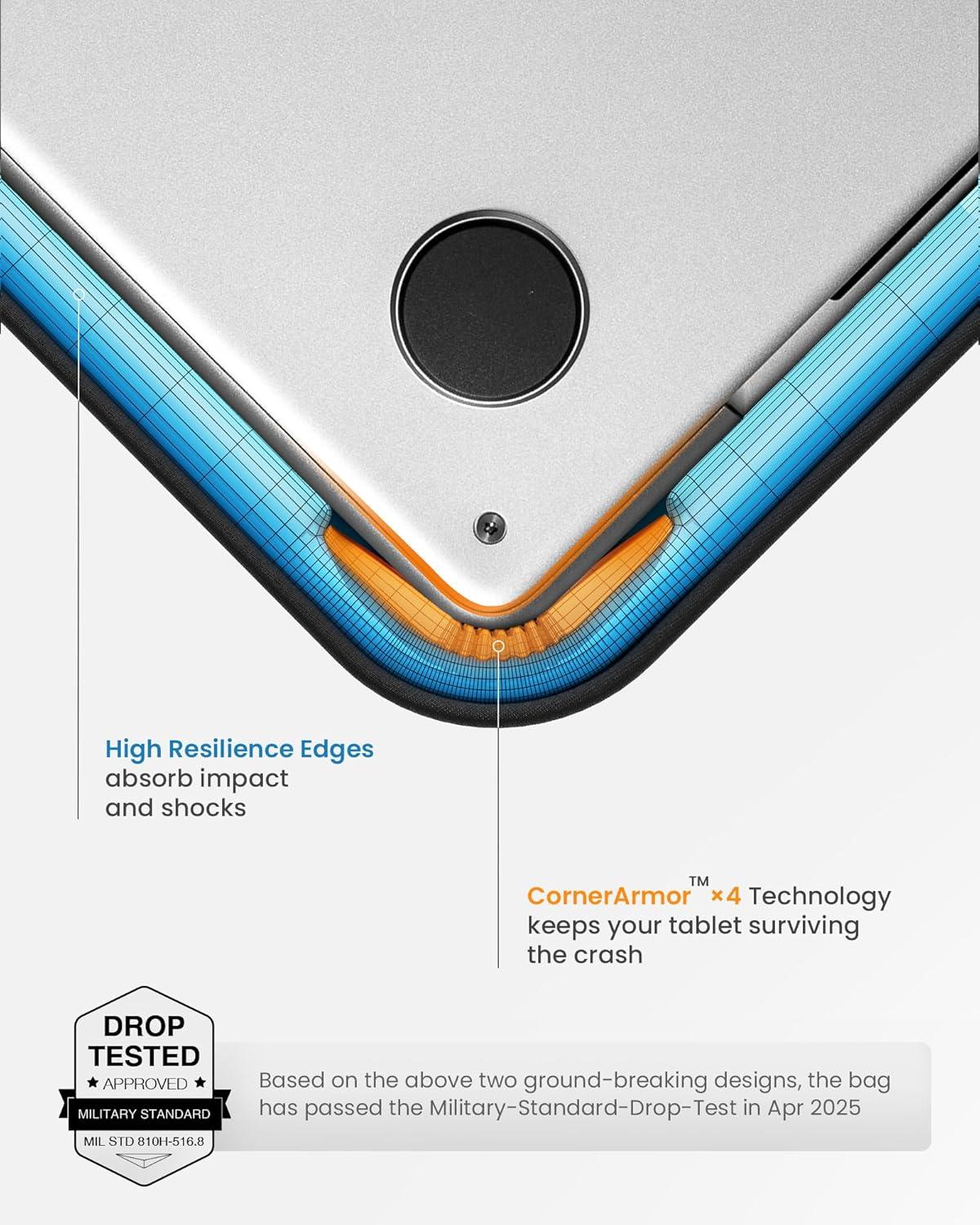 All-round Military-grade Protection: To protect your device from inevitable drops and bumps, the laptop shoulder bag with CornerArmor technology on 4 corners, high resilience edges, and high-density soft padding combined provide 360-degree protection for your computer. The computer handbag passed the military standard drop test in 2020 (MIL-STD-810H: 2019)