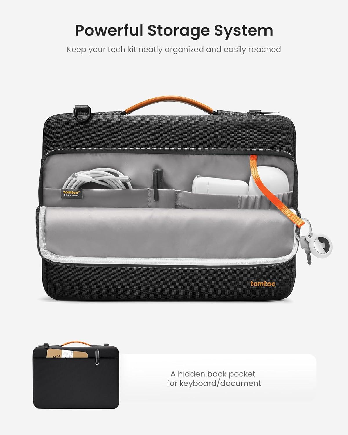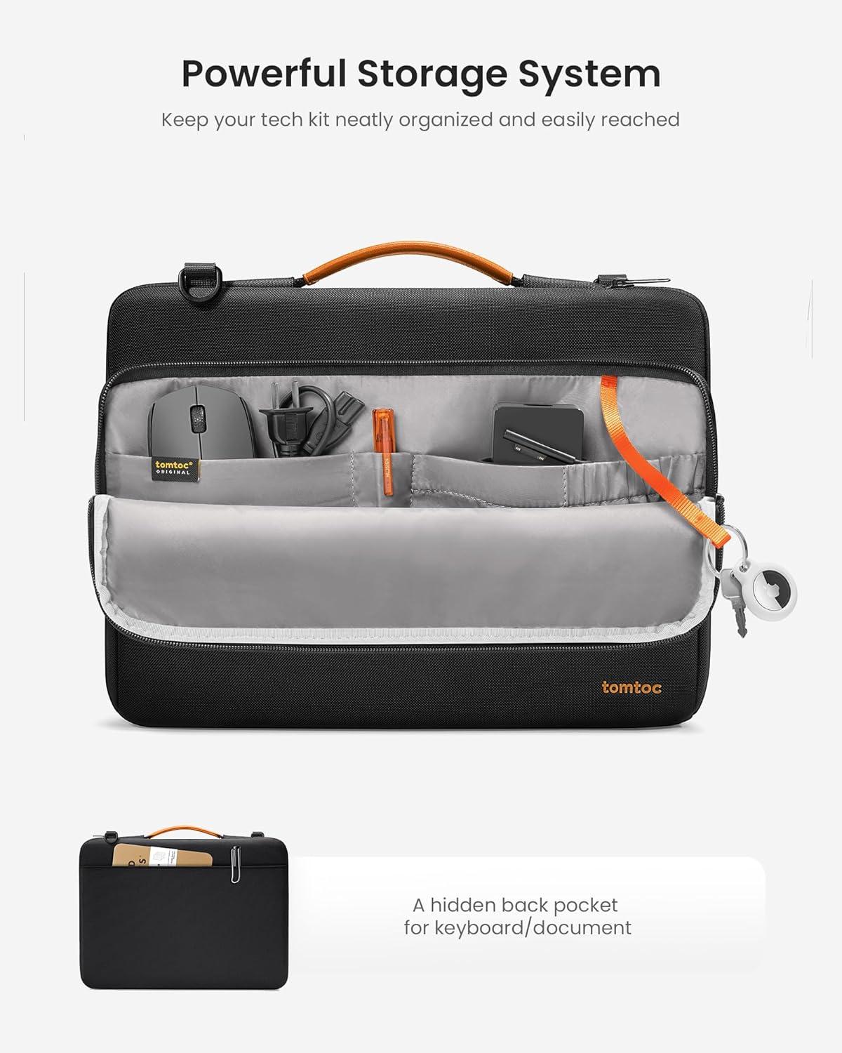 tomtoc 360 Protective Laptop Shoulder Bag for 15.6 Inch Lenovo IdeaPad Gaming 3, Acer Nitro 5 Gaming Laptop, ASUS 15.6-16 Inch ASUS Strix G16/G15, Dell XPS 17, Water-Resistant Accessory Carrying Case(Black)