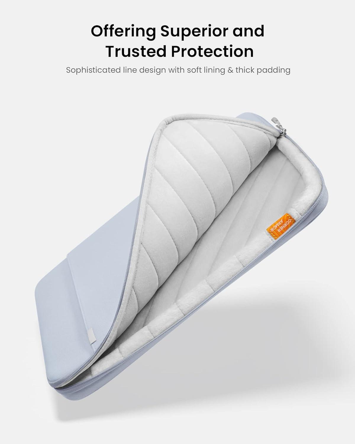 Military-Grade Protection: To combat the toughest situations: from falls to shocks to vibrations, tomtoc proposed the concept of 360 protection and designed the laptop sleeve with CornerArmor Technology, high resilience edges, and high-density soft padding. It passed the Military-Standard-Drop-Test while also maintaining a sleek design