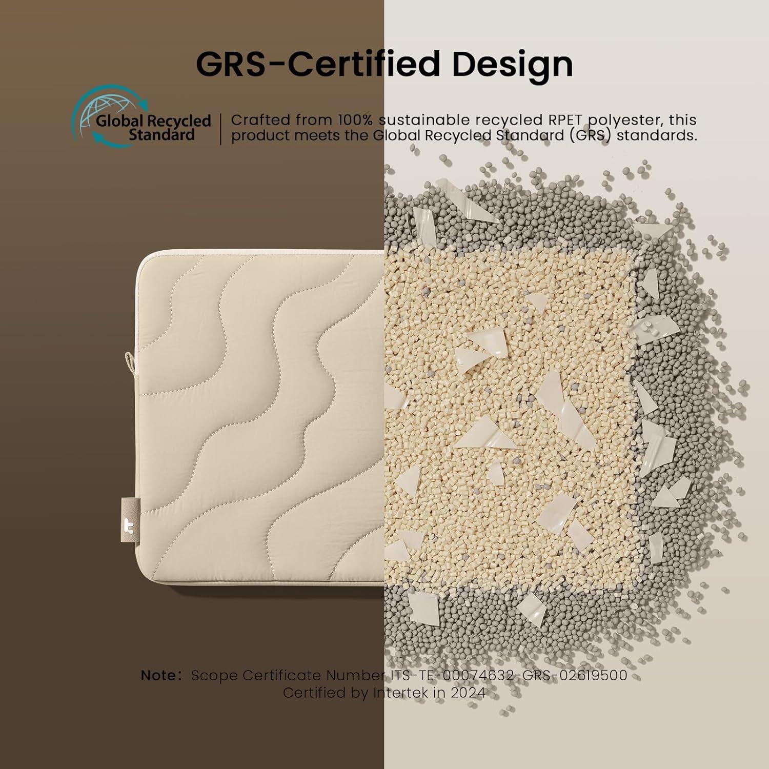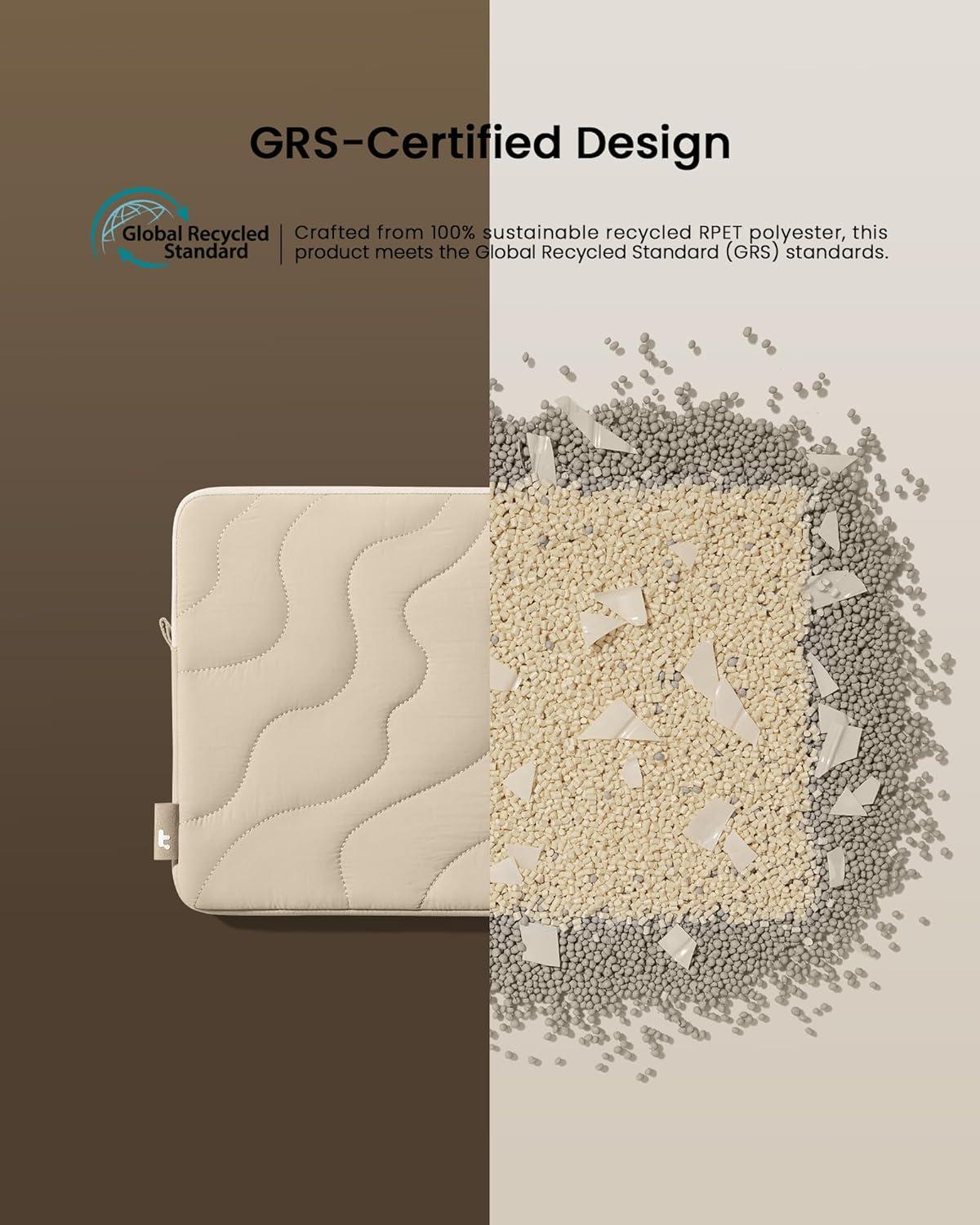 Terra Elegance: Crafted from recycled materials, this puffer laptop sleeve combines elegance with sustainability. Its distinctive contour line design creates timeless aesthetics, perfectly tailored to embrace your cherished MacBook