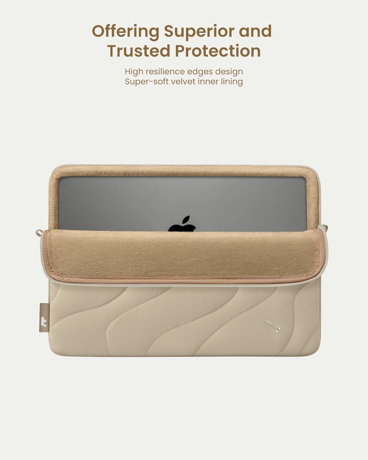 tomtoc 360 Protective Puffy Laptop Sleeve for 16-inch MacBook Pro M4/M3/M2/M1 Pro/Max A3403 A3186 A2991 A2780 A2485 2024-2019, Quilted Design Soft Cute Puffer Bag Computer Case for Dell XPS 16 Laptop(Dune Shade)