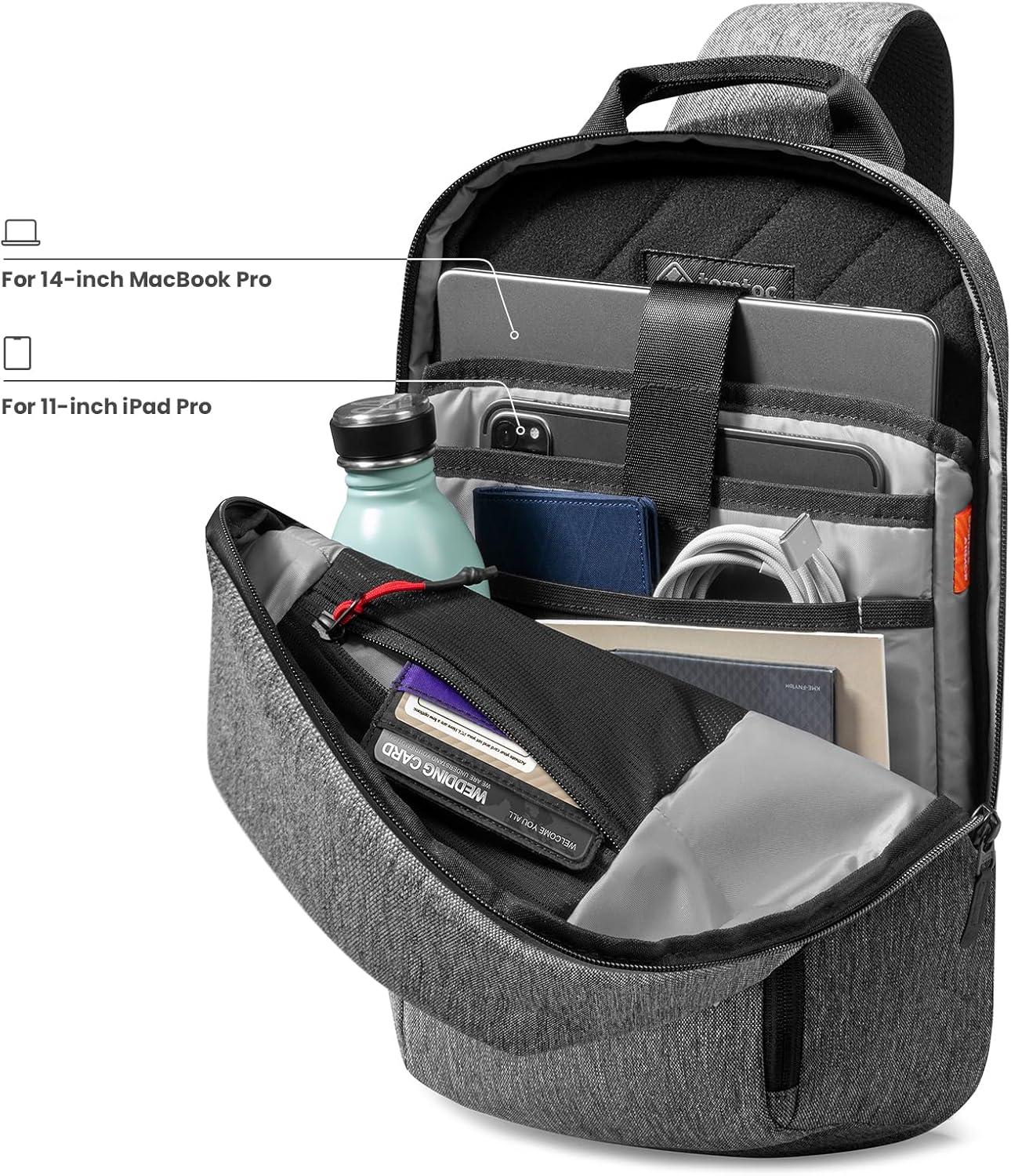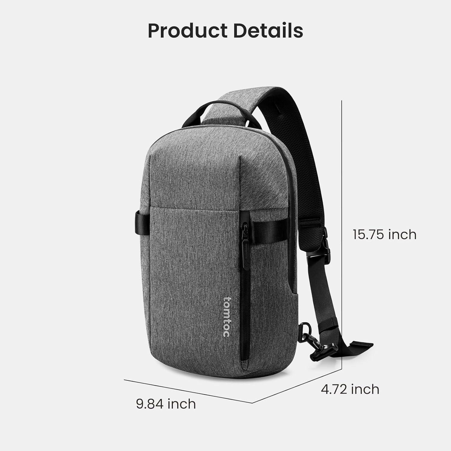 tomtoc 5L Compact Sling Backpack for Men Women, Lightweight Crossbody Shoulder Bag for 11 inch iPad Pro M5/M4, iPad Air M3/M2, 11″ iPad A16, Nintendo Switch 2/Rog Xbox Ally X, EDC Daypack – XS Size(Gray)