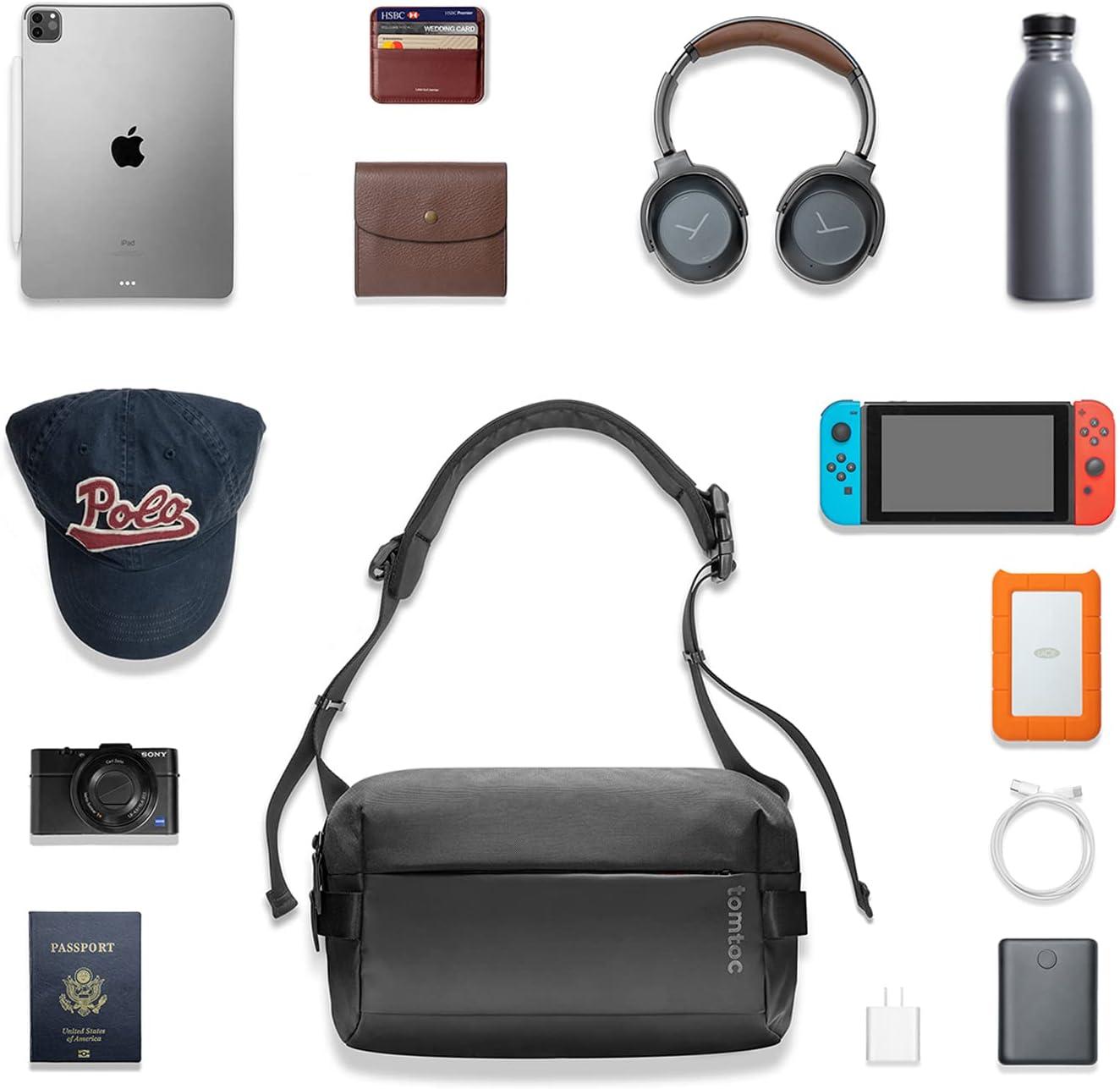 tomtoc Compact EDC Sling Bag, Minimalist Chest Shoulder Backpack Crossbody Bag for Men Women, Lightweight Carry Casual Bag(Black-m)