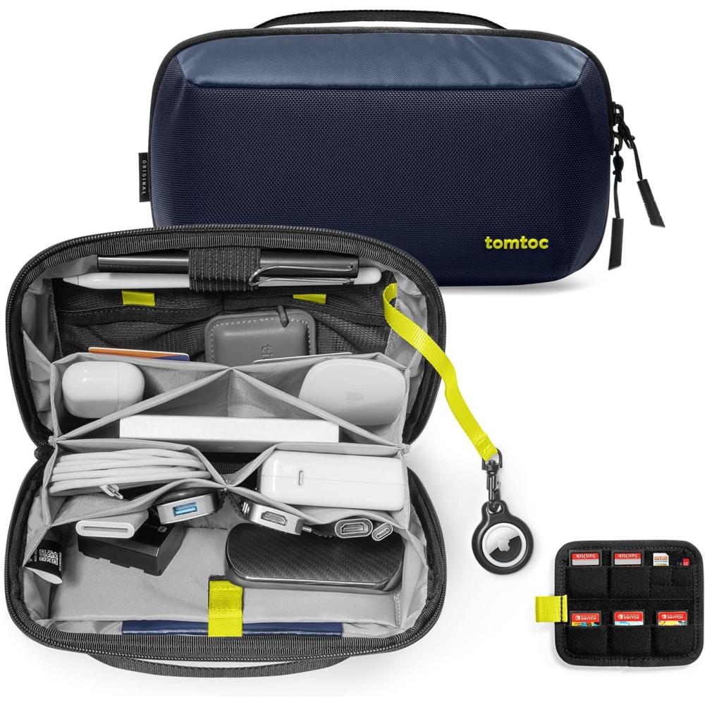 tomtoc Electronic Organizer Accessory Pouch for MacBook Charger, Cables, Power Bank, Hard Drive, Cords, Water-resistant Storage Bag with Removable Card Slots for USB Adapter, Memory Card, Black(Navy Blue)