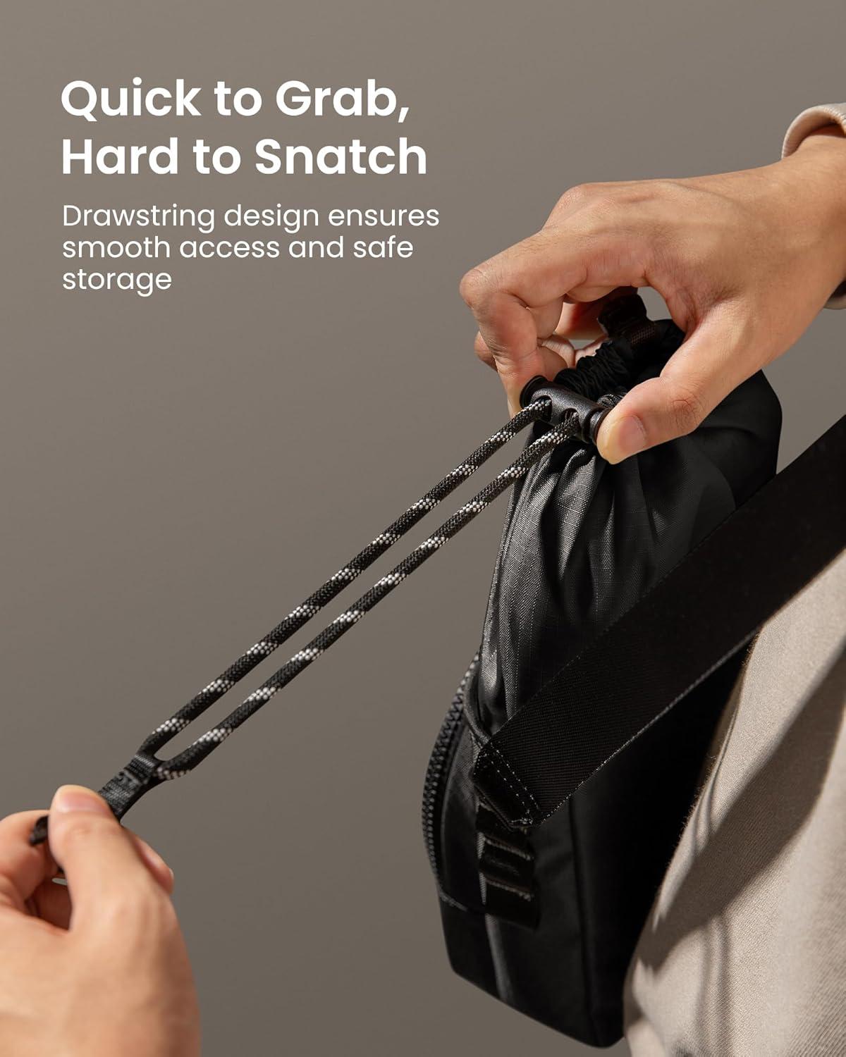 tomtoc Belt Bag with RFID Blocking, 1.5L Cross Body Fanny Pack for Women Men, Sling Waist Bags with Adjustable Strap for Travel Walk(Black)