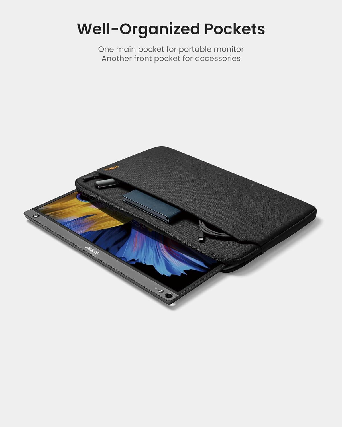 tomtoc Light-A18 Slim 15.6 Inch Portable Monitor Case with Acessories Storage, Light Protective Carrying Sleeve for Most 15.6 in Portable Monitors with Eco-Friendly Fabric