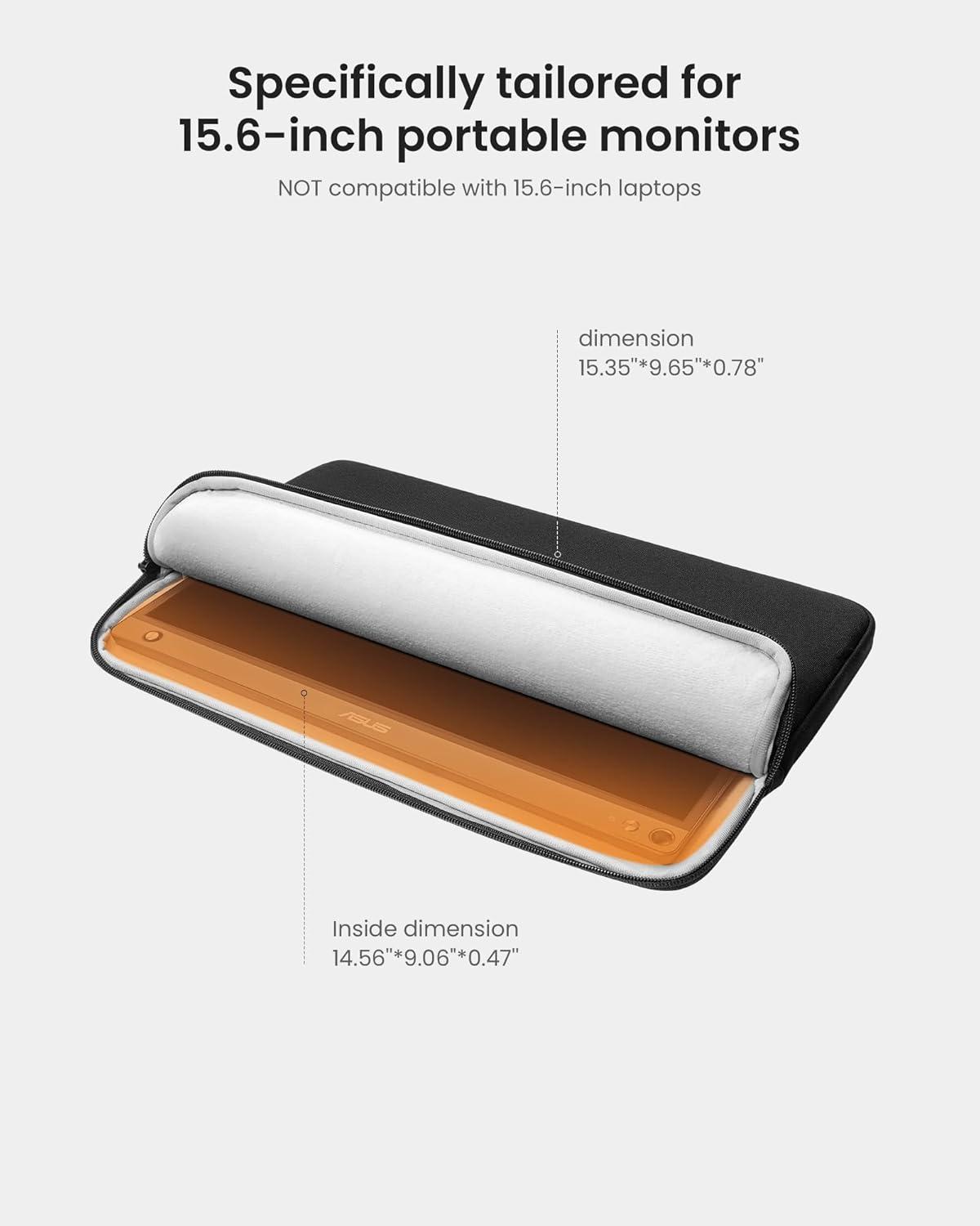 Compatibility: Internal dimensions – 14.57″ x 9.06″ x 0.47″ (NOT suitable for most 15.6-inch laptops, specifically tailored for portable display monitor), Compatible with Lenovo Yxk AOC ASUS ARZOPA MNN KYY ForHelp VILVA InnoView FANGOR KOORUI ViewSonic Lepow,etc and most 15.6 Inch portable display monitor