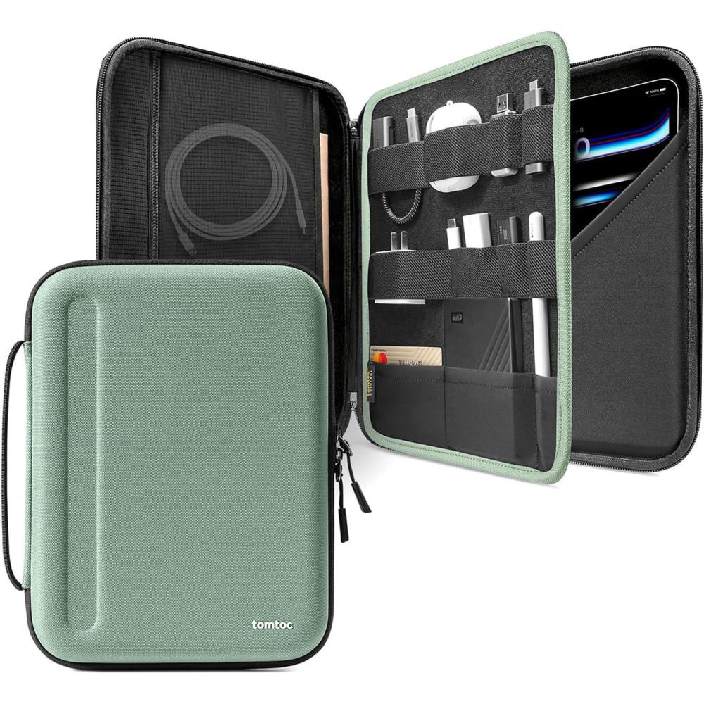 tomtoc Portfolio Case for 13 Inch iPad Pro M5/M4, iPad Air M3/M2 2025-2024, 12.9'' iPad Pro M2/M1, Protective Sleeve with Accessories Pocket, Carrying Storage Bag for Pencil Pro/Adapter/Magic Keyboard(Cactus)