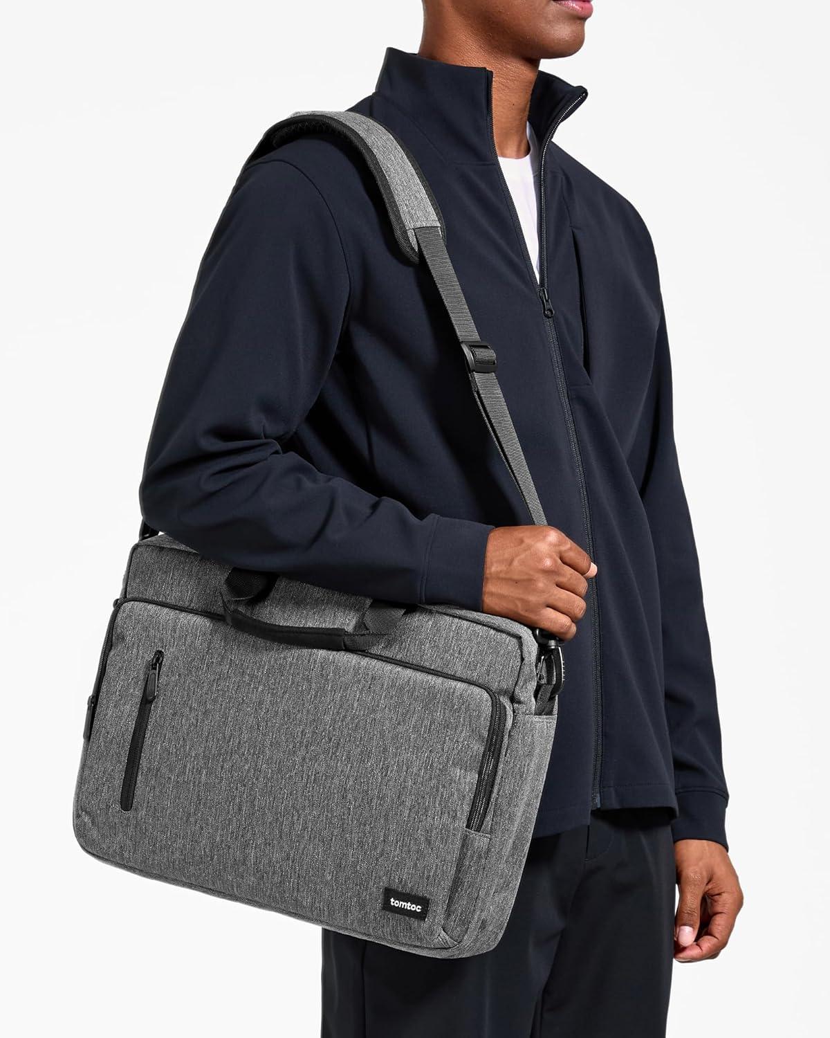 Ultra Protection: tomtoc laptop shoulder bag features protective padding at the bottom of the individual laptop compartment and ultra-thick, yet lightweight protective cushioning to ensure your laptop will remain safe from drops, bumps, dents, scratches and spills, like the car airbag