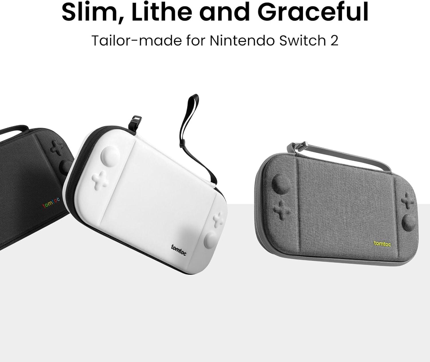tomtoc Slim Carrying Case for Nintendo Switch 2 Model 2025, Odorless Felt Protective Hard Shell with 12 Game Card Slots, Portable Travel Storage Case with Original Patent and Military Grade Protection(Gray)