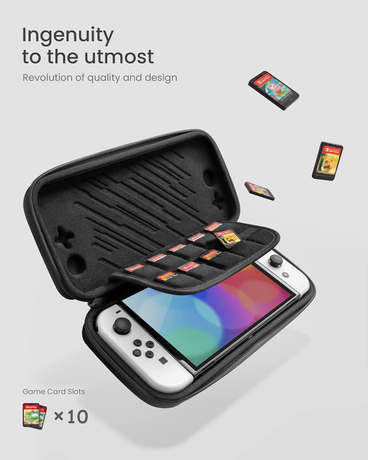 imagetomtoc Slim Carrying Case for Nintendo SwitchOLED Model Protective Switch Sleeve with 10 Game Cartridges Hard Portable Travel Carry Case with Original Patent and Military Grade Protection BlackBlack