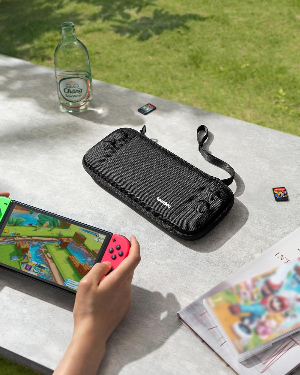 tomtoc Slim Carrying Case for Nintendo Switch/OLED Model, Protective Switch Sleeve with 10 Game Cartridges, Hard Portable Travel Carry Case, with Original Patent and Military Grade Protection, Black(Black)
