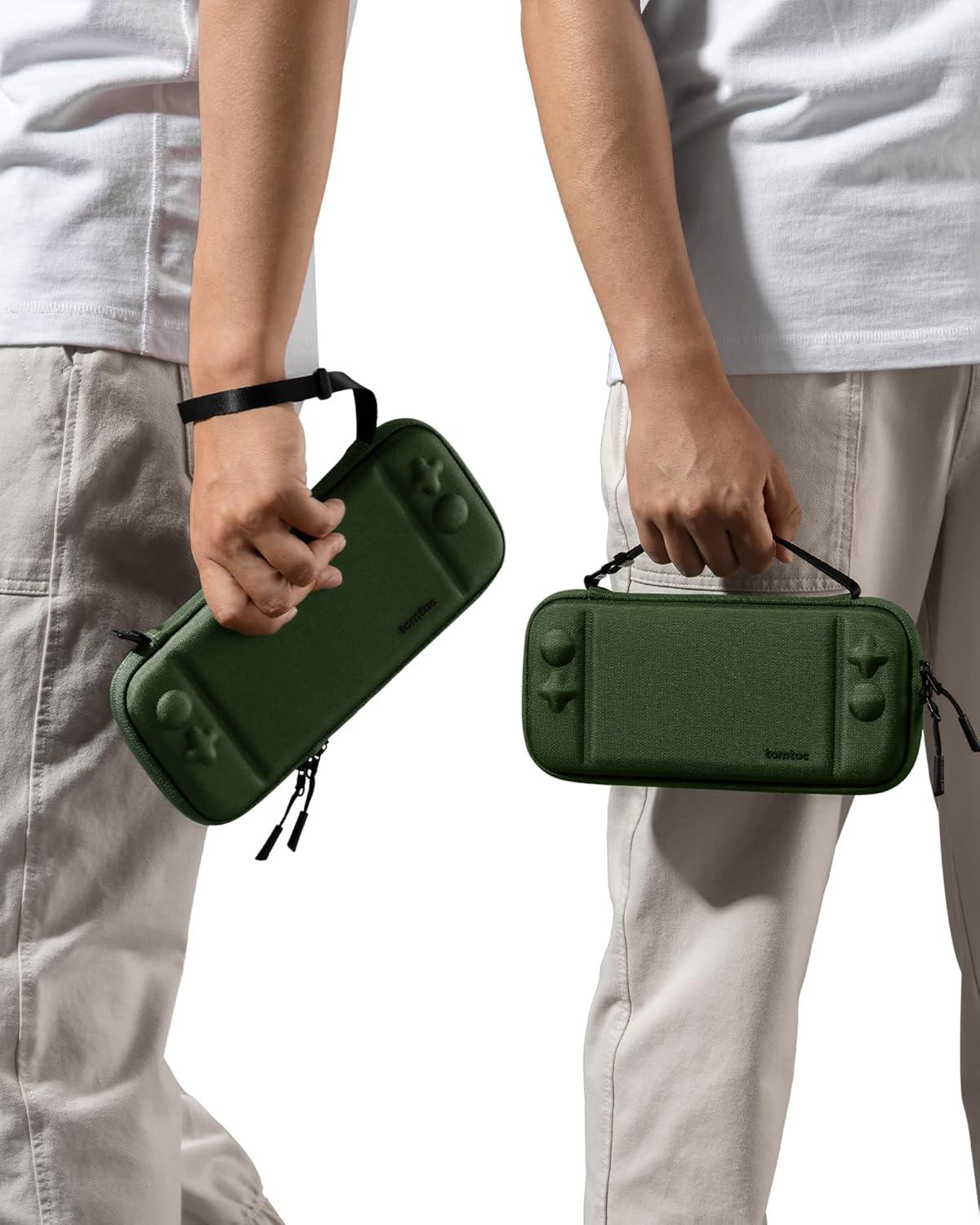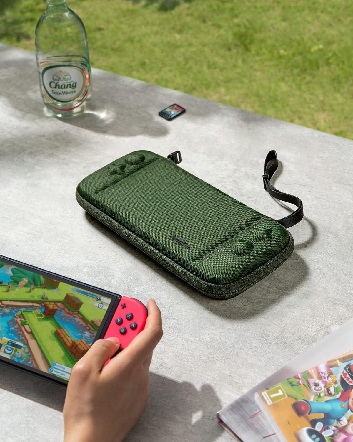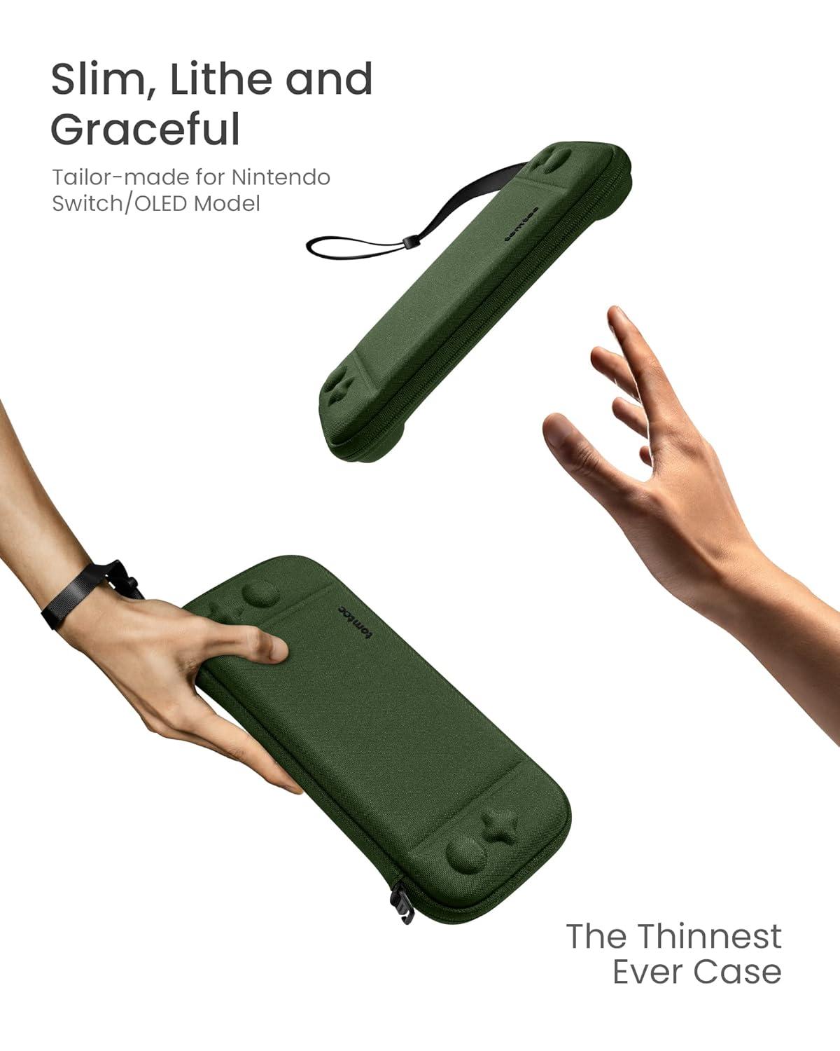 tomtoc Slim Carrying Case for Nintendo Switch/OLED Model, Protective Switch Sleeve with 10 Game Cartridges, Hard Portable Travel Carry Case, with Original Patent and Military Grade Protection, Black(Forest Green)