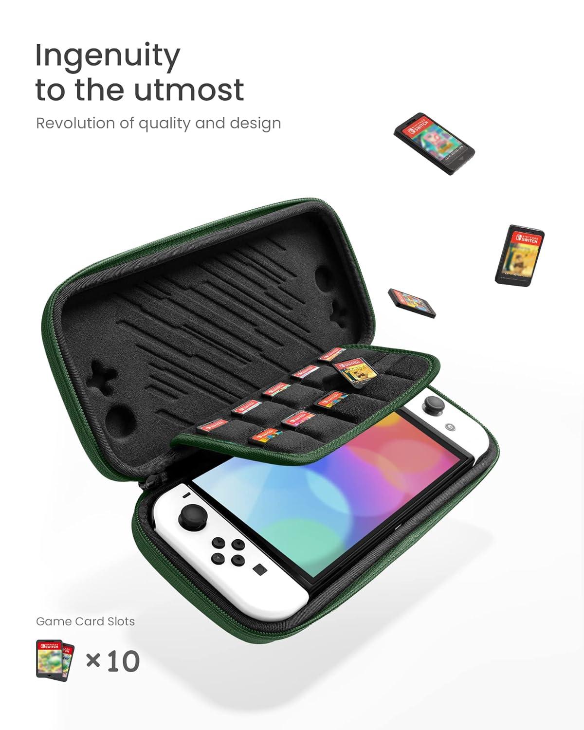imagetomtoc Slim Carrying Case for Nintendo SwitchOLED Model Protective Switch Sleeve with 10 Game Cartridges Hard Portable Travel Carry Case with Original Patent and Military Grade Protection BlackForest Green