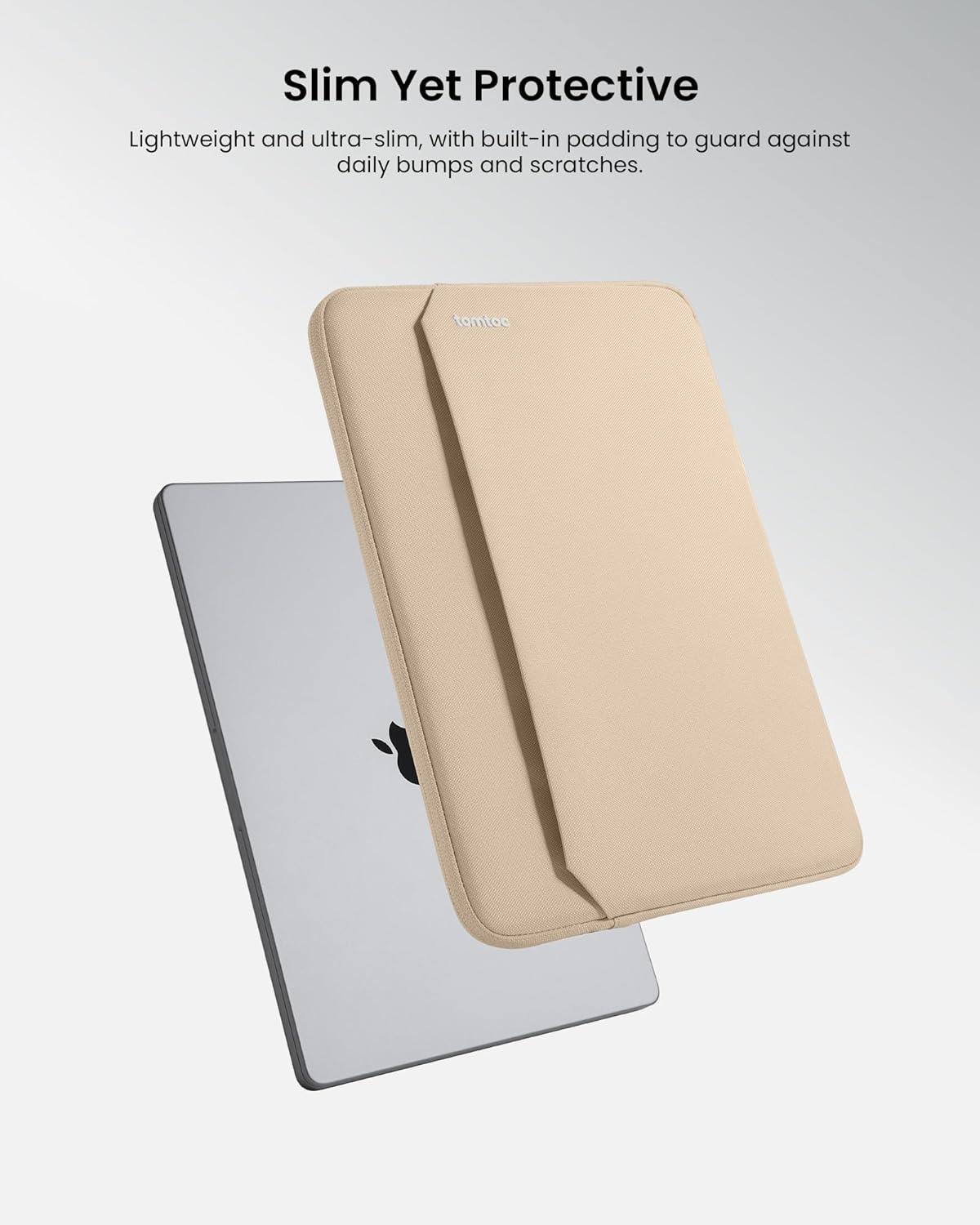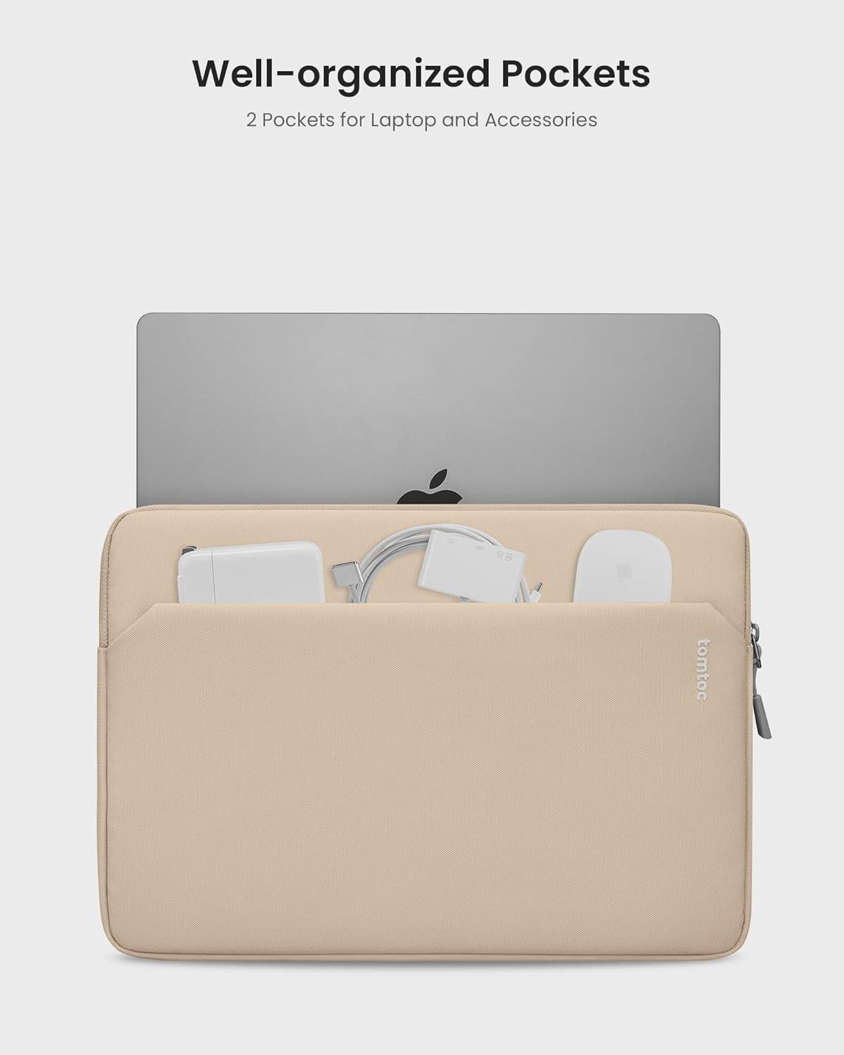 tomtoc Slim Laptop Sleeve for 14-inch MacBook Pro M5/M4/M3/M2/M1 Pro/Max 2025-2021, Water-Resistant Protective Case for 13.8 Inch Surface Laptop AI PC, Accessory Bag(Sand)