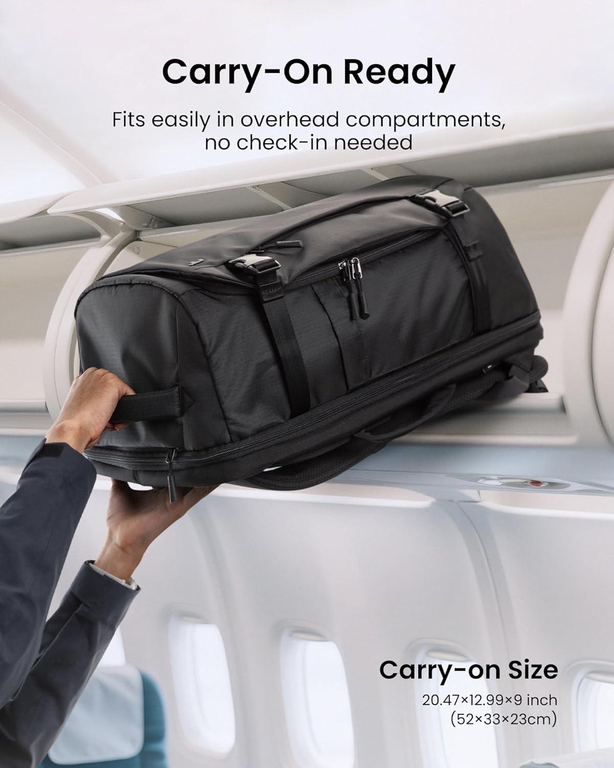 tomtoc Travel Backpack 40L, TSA Friendly Flight Approved Carry-on Luggage Hand Water-resistant Lightweight Business Rucksack, Durable Large Weekender Bag Daypack Fits 17.3 Inch Laptop(Black-ripstop)