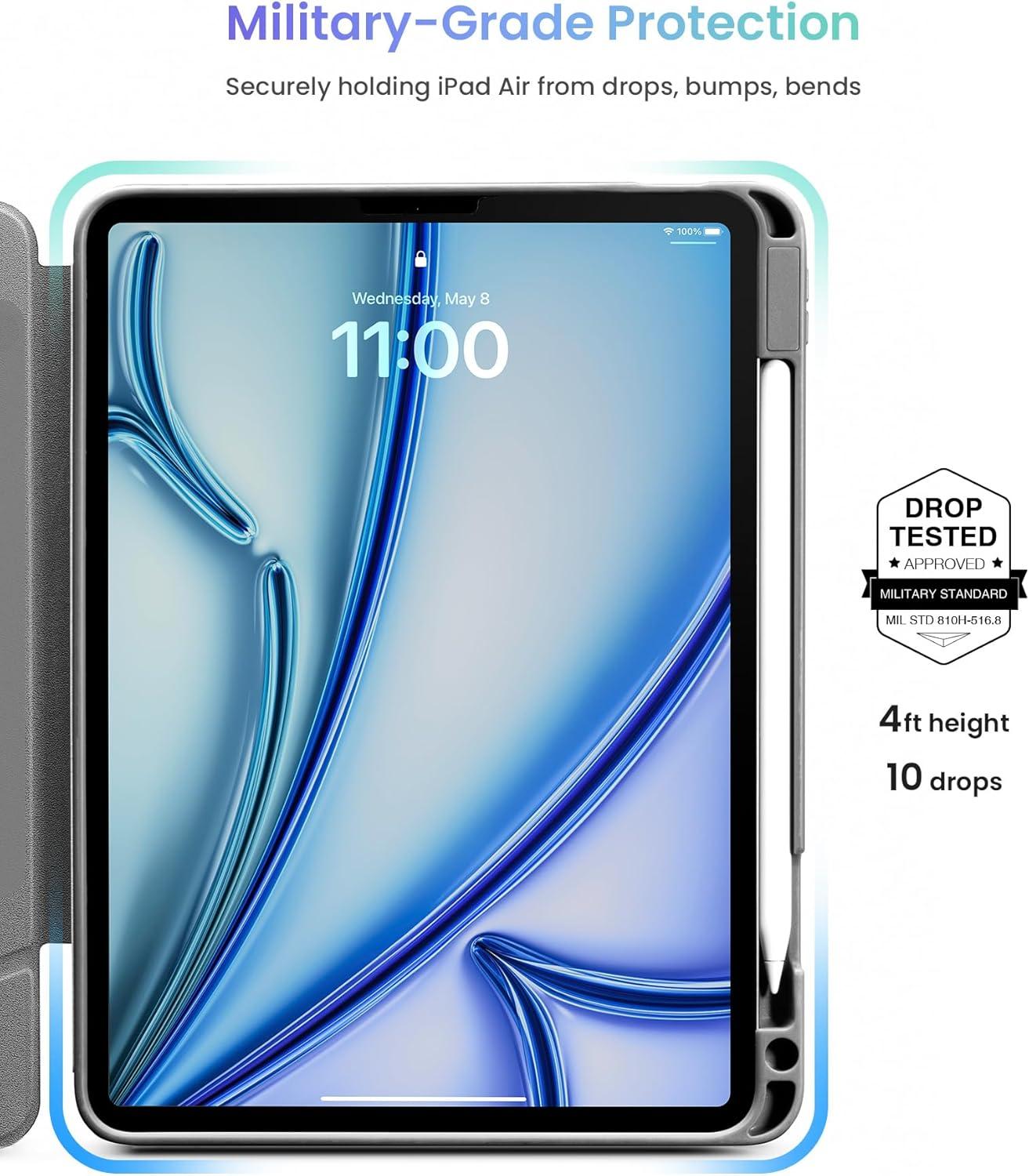What You Get: 12-month worry-free warranty, friendly and timely customer Support, A Smart Vertical Case for 11-inch iPad Air M2 2024, Compatible with Apple Pencil wireless charging (Pencil Not Included)