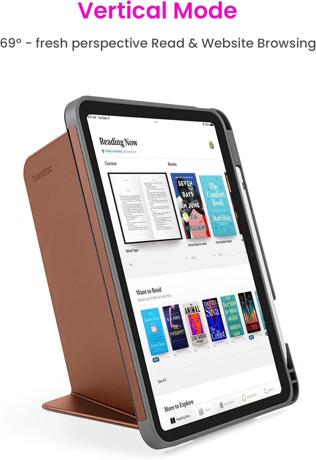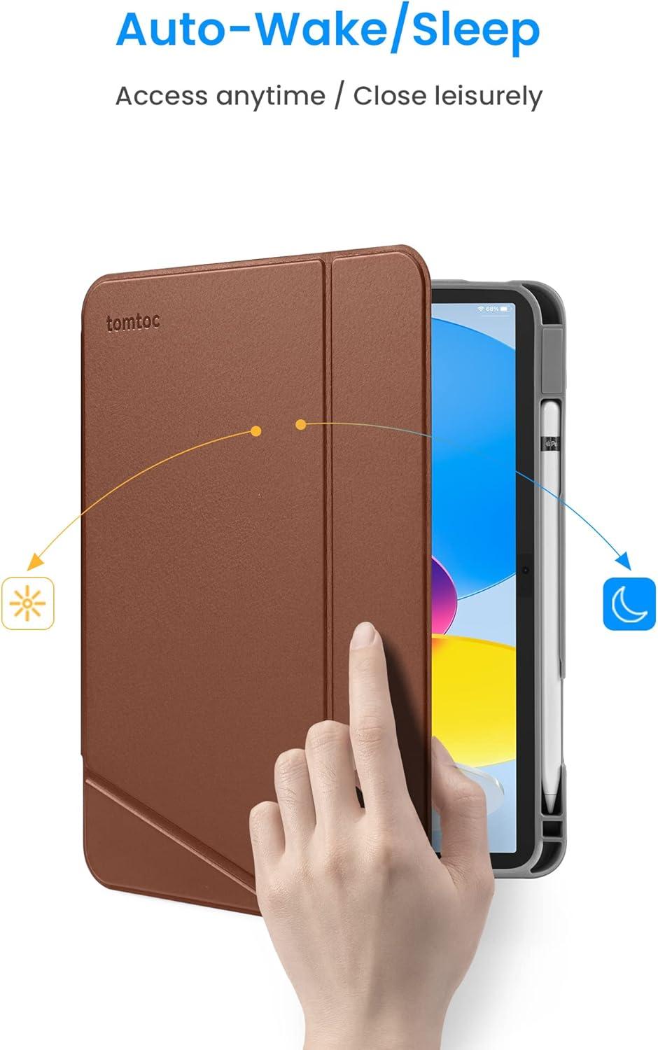 tomtoc Vertical Tri-Mode Case Compatible with 11 Inch iPad A16 2025 & 10.9 Inch iPad 10 2022, Protective Case with Pencil Holder, Magnetic Kickstand for 3 Use Modes, Auto Wake/Sleep Cover, Brown(Brown)